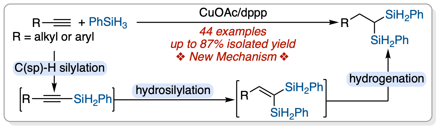 36. Li, J.; Fang, S.; Ge, S.* “Copper-Catalyzed Formal Dihydrosilylation of Terminal Alkynes: A C(sp)-H Silylation-Hydrosilylation-Hydrogenation Sequence” ACS Catal. 2024, 14, 7996–8004. [doi].